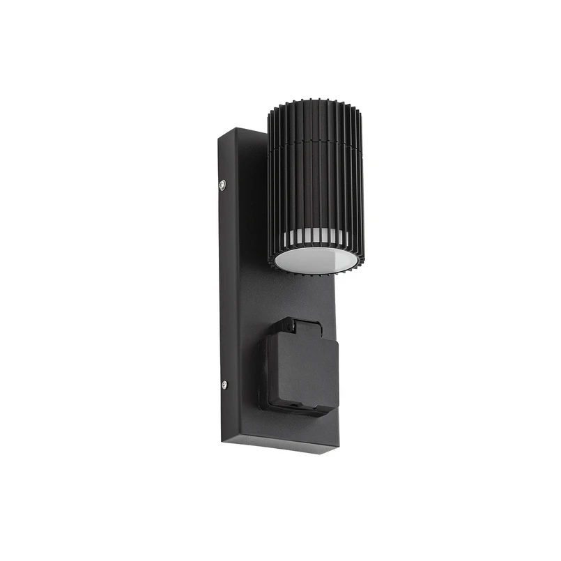 Die Leuchte ist mit einer GU10-Fassung ausgestattet, die eine flexible Wahl des Leuchtmittels ermöglicht. Zudem kann die Lichtintensität über einen externen Dimmer individuell angepasst werden, um die gewünschte Atmosphäre zu schaffen. Ob als stilvolle Beleuchtung oder praktische Stromquelle – diese Außenwandleuchte vereint Funktion und Ästhetik in einem durchdachten Produkt.