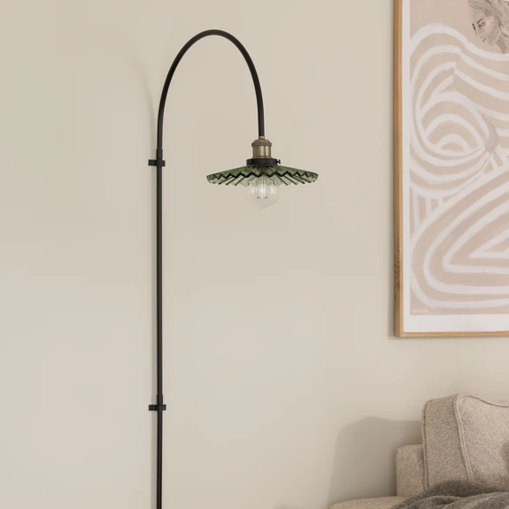 Die Wandleuchte Cobbler 150 vereint modernes Design mit rustikalem Charme. Die Kombination aus hochwertigem Glas und robustem Metall verleiht der Leuchte eine zeitlose Eleganz, die sich harmonisch in verschiedene Einrichtungsstile einfügt. Die Farbgebung in Schwarz und Grün sorgt für einen markanten Kontrast und setzt gezielte Akzente im Wohnbereich.