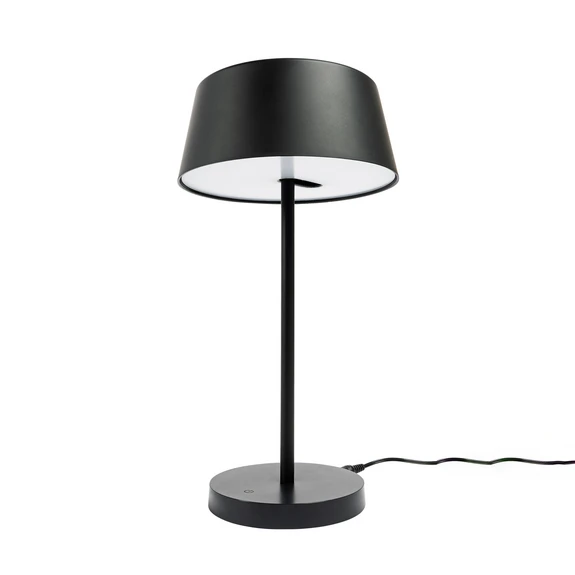 Milica LED Tischleuchte Dim. Black ist eine moderne Tischleuchte mit vielen Möglichkeiten. Das Aussehen der Leuchte erinnert an die vertraute, traditionelle Tischleuchte und überrascht mit vielen Einstellmöglichkeiten. Der Schirm kann um 45 Grad geneigt werden, um die Richtung des Lichts zu verändern. Bei der Lichtquelle handelt es sich nicht um eine herkömmliche Glühbirne, sondern um ein eingebautes LED-Modul, das aus der Unterseite der Leuchte strahlt. Der Lichtaustritt wird durch eine Abdeckung abgeschirmt, so dass das Licht weich und gleichmäßig ist, ohne zu blenden.
