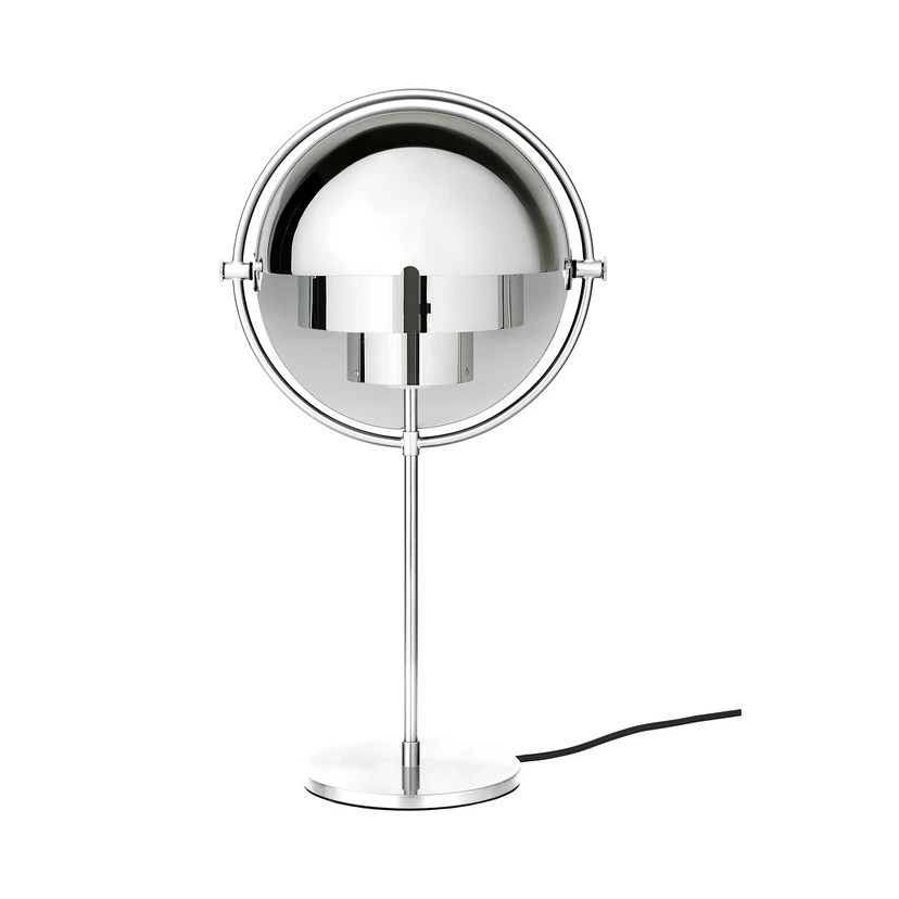 Der Multi-Lite Tischleuchte All Chrome umfasst die Goldene Ära vom Dänischen Design mit seiner Karakteristischen Form aus zwei gegenüberliegenden einstellbaren Schirmen, die es möglich machen einen persönlichen Eindruck zu schaffen und geben eine breite Reichweite von Leuchtintensität im Raum. Wenn sie den Schirm einzeln drehen, kan man den Muli-Lite Stehleuchte in vielen verschiedenen Arten kombinieren, wo sie das Licht nach oben drehen, nach unten drehen oder ein asymetrisches Kunstlicht erschaffen.