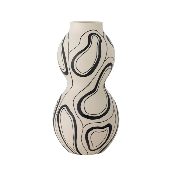 Die Nicola Vase Black von Bloomingville ist ein elegantes Stück Steingut, das Ihrem Zuhause einen Hauch von raffiniertem Stil verleihen wird. Diese Vase hat ein einfaches und schönes Design, bei dem das schwarze, organische Muster einen schönen Kontrast zum neutralen Sockel bildet. Sie eignet sich perfekt als Tafelaufsatz auf dem Esstisch oder auf der Fensterbank, wo sie die Blicke auf sich zieht und einen stilvollen Anblick bietet. Die Vase ist aus schwarzem Steinzeug gefertigt und hat eine seidig glatte Glasur, die ihr ein luxuriöses Finish verleiht. Sie ist ideal für Ihre Lieblingsblumen oder als eigenständiges Dekorationsobjekt. Ganz gleich, ob Sie Ihrer Einrichtung einen modernen Touch verleihen wollen oder einfach nur eine schöne Vase für Ihre Blumen suchen, die Nicola Vase Black ist eine ausgezeichnete Wahl..