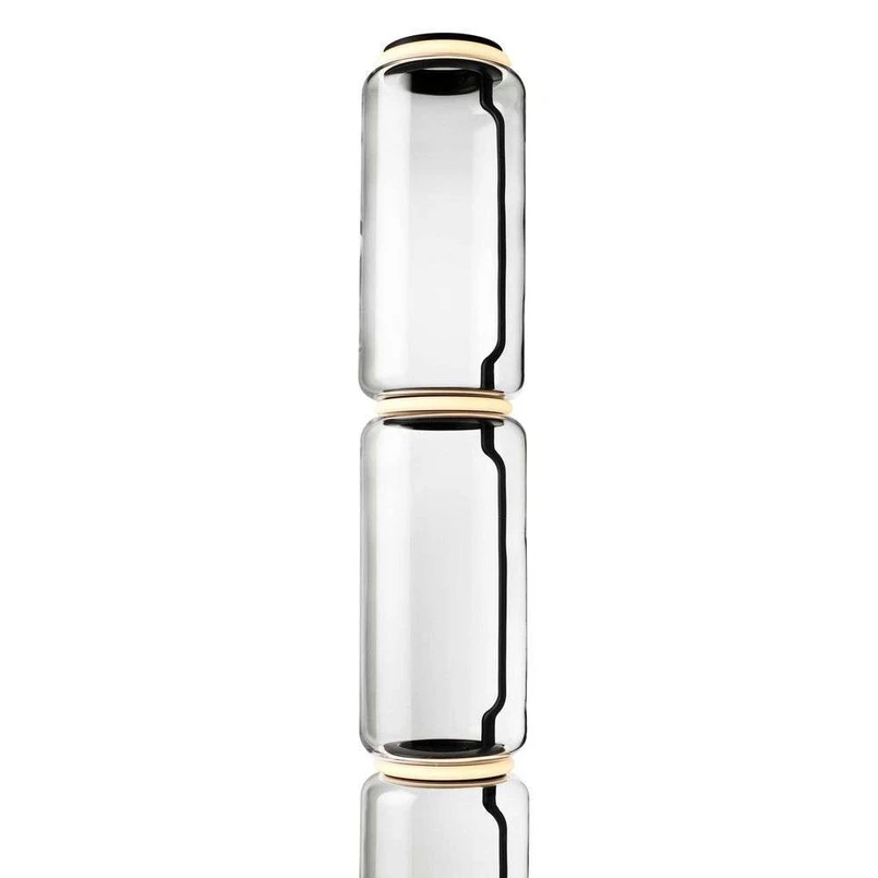 Die Noctambule F3 High Cylinder Stehleuchte von Flos ist eine beeindruckende Stehleuchte, die Eleganz und Funktionalität vereint. Diese Stehleuchte besteht aus miteinander verbundenen Glasmodulen, die eine Höhe von 2,17 Metern erreichen und somit ein markantes Element in jedem Raum darstellen. Die Struktur der Leuchte besteht aus zylindrischem und halbkugelförmigem mundgeblasenem Kristall für einen klaren und modernen Look. Der Sockel und die Ringe sind aus druckgegossenem Aluminium, während die inneren Seitenarme aus hydrogeformtem Stahl gefertigt sind. Die äußeren Ringdiffusoren bestehen aus optischem Opalsilikon und sorgen für eine gleichmäßige und angenehme Lichtverteilung. Mit einem 2 m langen Stromkabel und einem per Pedal bedienbaren Dimmer können Sie die Lichtintensität ganz einfach von 10 % bis 100 % an Ihre Bedürfnisse anpassen. Diese Stehleuchte ist ideal für eine gemütliche Atmosphäre im Wohnzimmer oder als stilvolles Licht in der Eingangshalle.