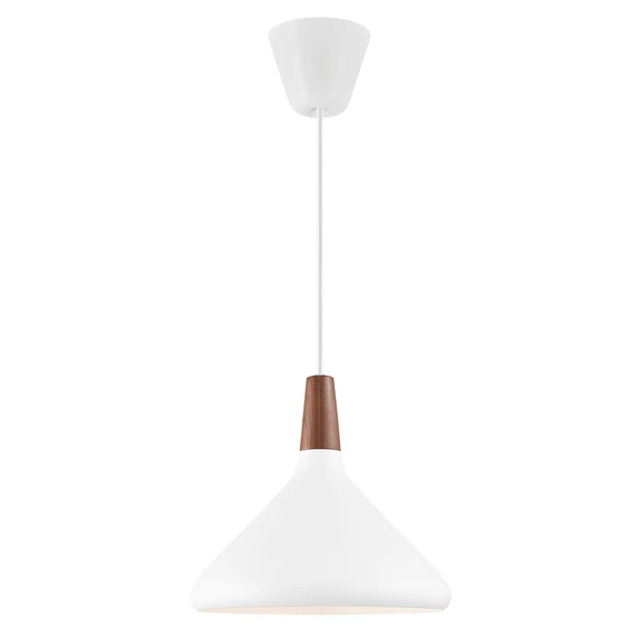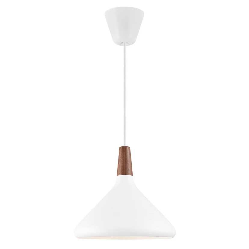 Nori 27 Pendelleuchte Weiß präsentiert sich in einem schlichten und modernen Design, das nicht nur die Umgebung mit praktischer Beleuchtung bereichert, sondern auch eine schöne Ergänzung zur Raumausstattung darstellt. Die Pendelleuchte stammt aus der Feder des dänischen Designduos Rune Balle und Christian Bjørn, die bei ihren Entwürfen stets auf stilvolle Qualität setzen. Der stilvolle Designer-Touch spiegelt sich deutlich im schlichten und formorientierten Äußeren der Leuchte wider, das hier mit einem schönen Holzelement am oberen Ende des Schirms veredelt wurde.
