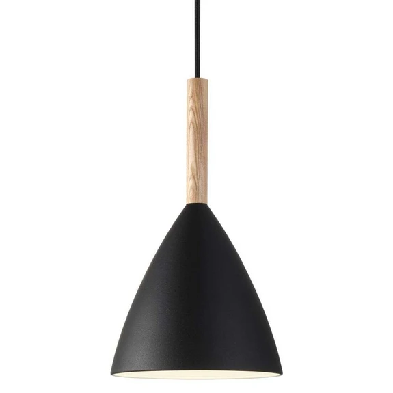 Pure 20 Pendelleuchte Schwarz ist ein schlichtes, modernes Modell, das Holz und Metall zu einem harmonischen Ganzen verbindet. Die einfache Vereinigung der Glockenform des Lampenschirms mit der zylindrischen Holzaufhängung und den matten, dezenten Farben schafft einen ausgewogenen Ausdruck, der jeden Raum schmückt. Dank des minimalistischen Looks lässt sich die Leuchte leicht in viele Arten von Räumen und Interieurs einfügen.